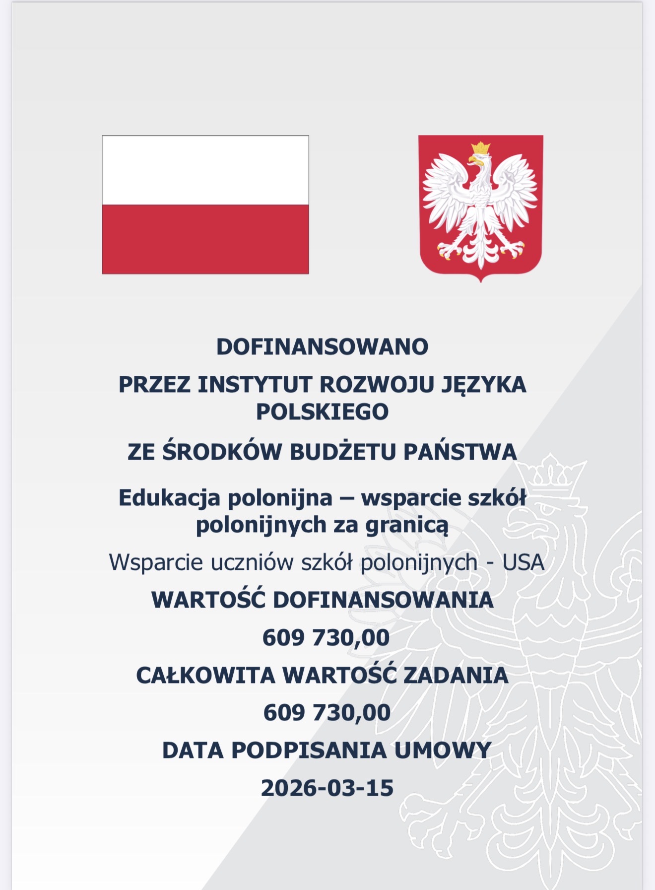 Dziękujemy Wspólnocie Polskiej za przyznane dofinansowanie w wysokości 132 000,00 zł, które umożliwi nam realizację naszych planów edukacyjnych.