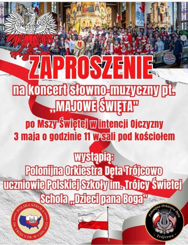 Czytaj dalej »Polska Szkoła im. Trójcy Świętej została utworzona w październiku 1992 roku pod patronatem Polskiej Misji Duszpasterskiej. Została założona przez młodych parafian w celu krzewienia nauki języka polskiego. Więcej »